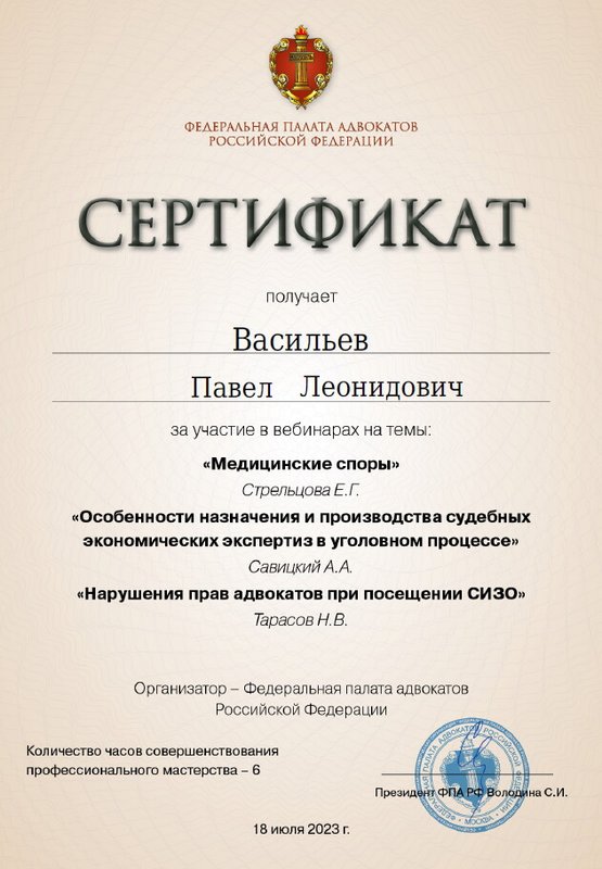 Адвокат Васильев Павел Леонидович